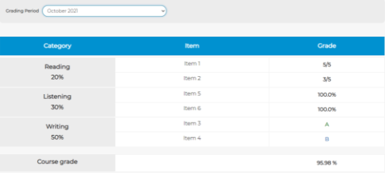 Now the student & parents can see the course grade in the gradebook, the course grade will be displayed after the grading period is announced